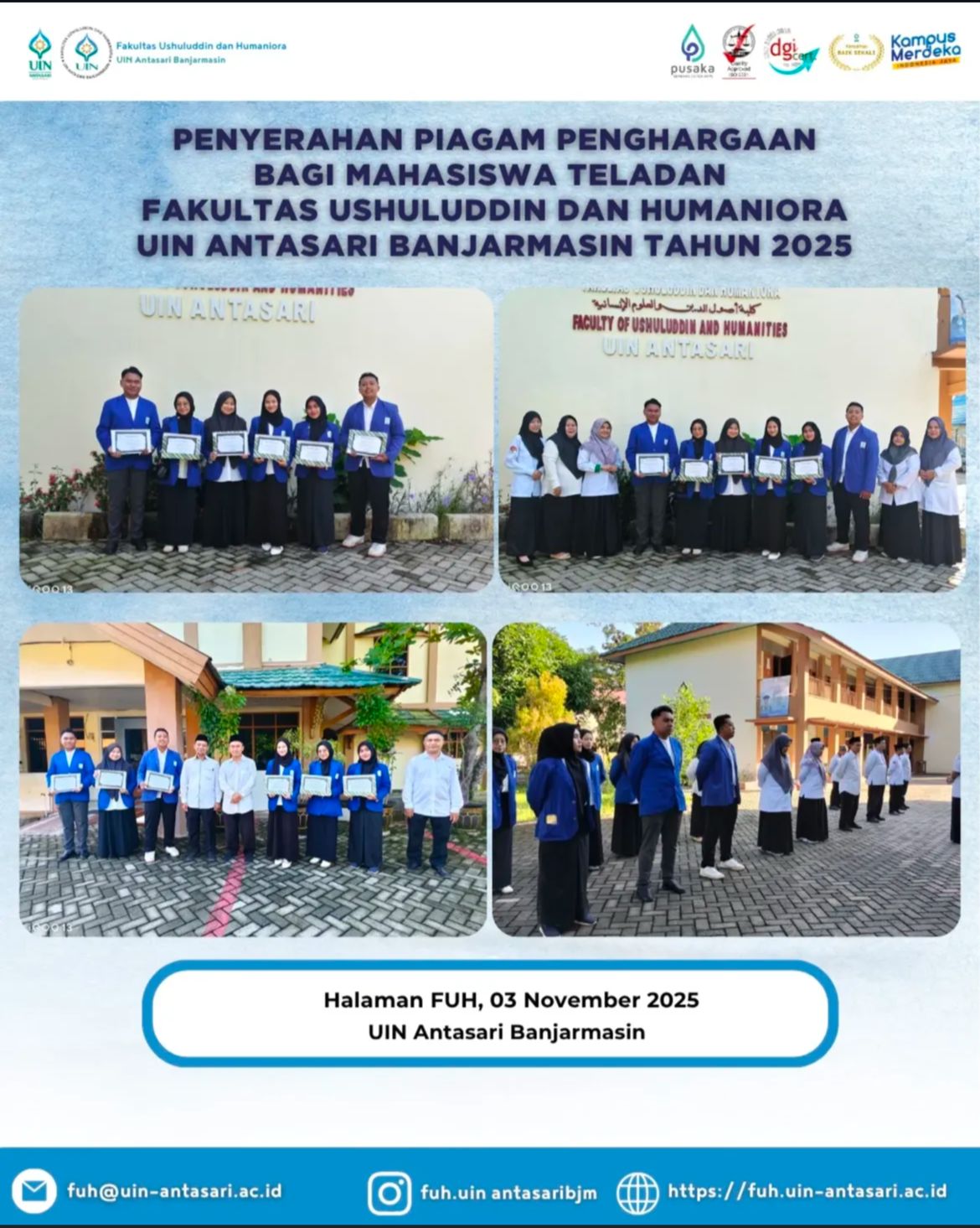 Penyerahan Piagam Penghargaan Bagi Mahasiswa Teladan FUH UIN Antasari Tahun 2025