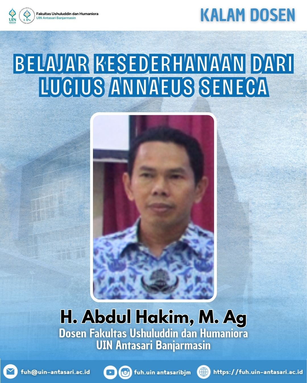 BANJARMASIN – Mengawali rangkaian agenda pasca Apel Peringatan Hari Amal Bhakti (HAB) Kementerian Agama ke-80, jajaran pimpinan dan civitas akademika Fakultas Ushuluddin dan Humaniora (FUH) UIN Antasari Banjarmasin melaksanakan ziarah khidmat ke makam ulama sekaligus tokoh pendidik terkemuka, Almarhum KH. …