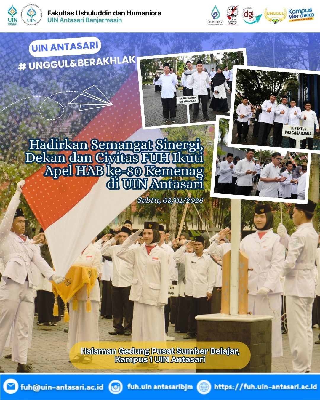 BANJARMASIN – Civitas academica Universitas Islam Negeri Antasari menggelar upacara peringatan Hari Amal Bakti (HAB) ke-80 Kementerian Agama Republik Indonesia, Sabtu (3/1/2026). Upacara yang berlangsung khidmat ini digelar di Halaman Gedung Pusat Sumber Belajar Kampus 1, mulai pukul 07.30 Wita. …