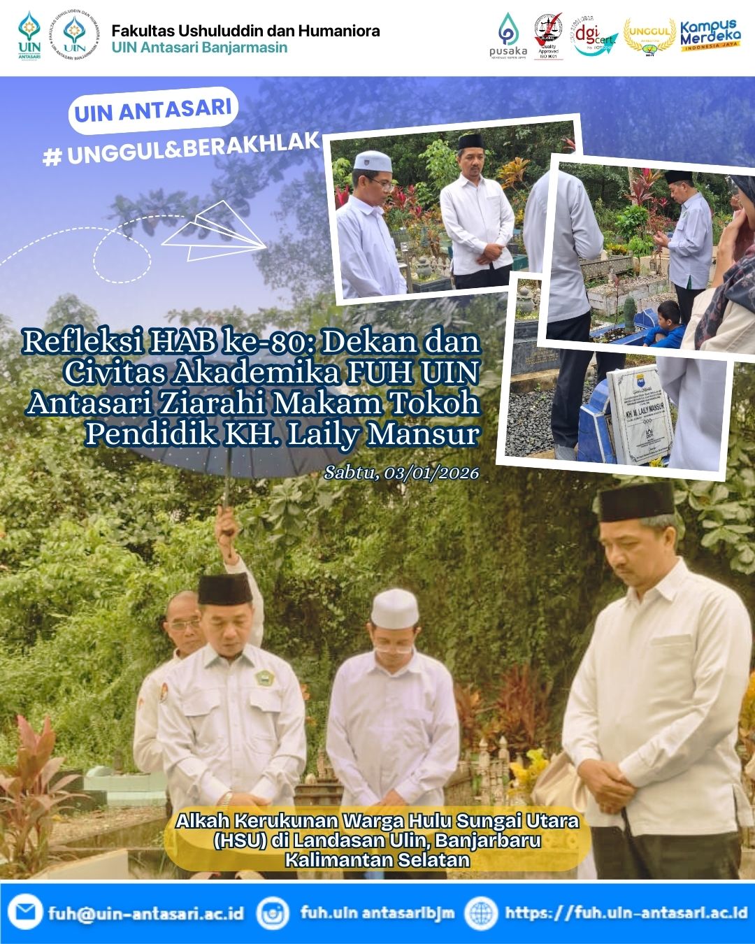 BANJARMASIN – Mengawali rangkaian agenda pasca Apel Peringatan Hari Amal Bhakti (HAB) Kementerian Agama ke-80, jajaran pimpinan dan civitas akademika Fakultas Ushuluddin dan Humaniora (FUH) UIN Antasari Banjarmasin melaksanakan ziarah khidmat ke makam ulama sekaligus tokoh pendidik terkemuka, Almarhum KH. …