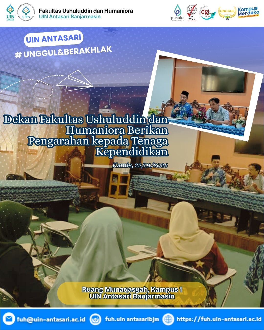 Kegiatan pengarahan ini diharapkan dapat memperkuat sinergi antara pimpinan dan tenaga kependidikan, sekaligus menjadi langkah awal dalam mewujudkan tata kelola Fakultas Ushuluddin dan Humaniora yang lebih efektif, responsif, dan berorientasi pada pelayanan prima.