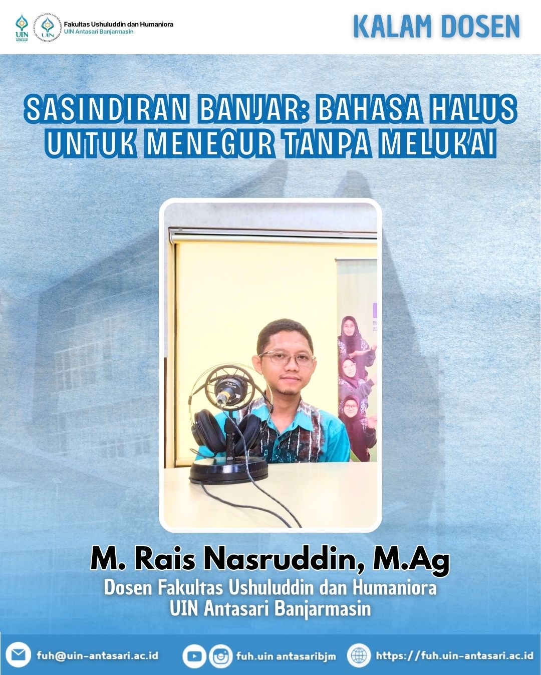 Budaya sasindiran menunjukkan bahwa orang Banjar sejak lama sudah memiliki etika komunikasi sosial yang matang. Jauh sebelum istilah “etika bermedia” dikenal, sasindiran sudah menjalankan fungsi itu dalam kehidupan masyarakat.
