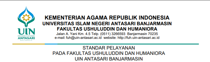 STANDAR PELAYANAN PADA FAKULTAS USHULUDDIN DAN HUMANIORA UIN ANTASARI BANJARMASIN Posted by Admin Web Categories informasi, Pengumuman Date 20 April 2026 20260421091511STANDAR LAYANAN FUH RE1 (1) Tag:FUH UIN Antasari, Pengumuman Share: Admin Web Previous post UIN Antasari Tegaskan Komitmen Pelayanan Prima melalui Maklumat Pelayanan 20 April 2026 You may also like UIN Antasari Tegaskan Komitmen Pelayanan Prima melalui Maklumat Pelayanan 17 April 2026 Pengumuman Kelulusan Program Khusus Ulama (PKU) Jalur SPAN-PTKIN Tahun 2026 8 April 2026 699 SK PEDOMAN KODE ETIK PENELITIAN DAN PUBLIKASI UIN ANTASARI BAJARMASIN TAHUN 2025 4 Desember 2025