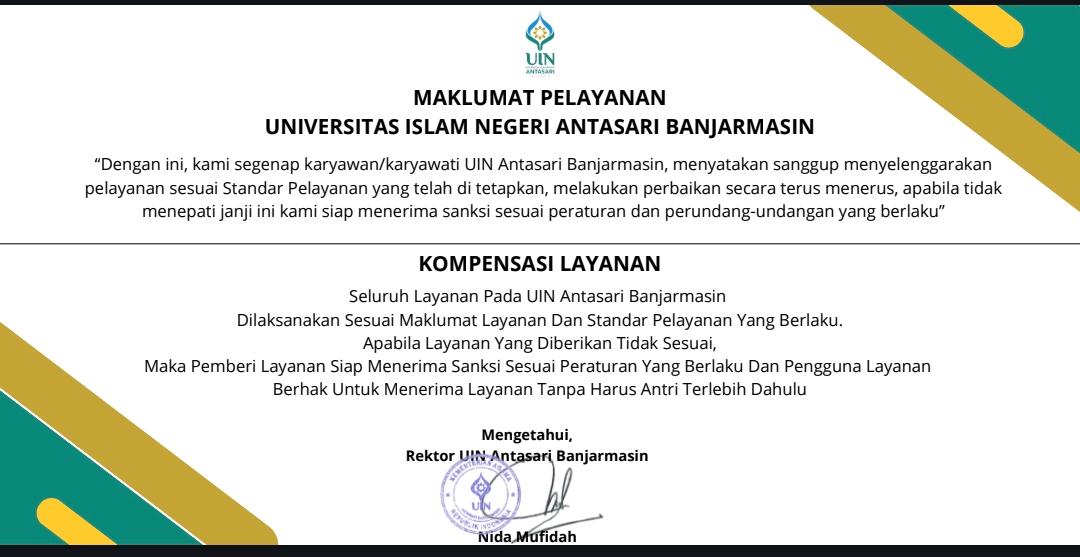Banjarmasin – Universitas Islam Negeri (UIN) Antasari Banjarmasin kembali menegaskan komitmennya dalam memberikan pelayanan terbaik kepada masyarakat melalui penetapan Maklumat Pelayanan. Maklumat ini menjadi landasan penting dalam penyelenggaraan layanan yang profesional, transparan, dan akuntabel di lingkungan kampus.